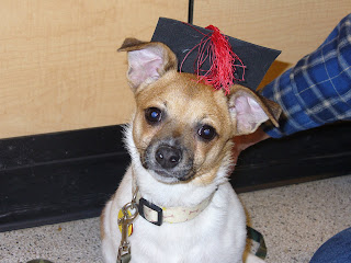 Frankie was adopted by Alan, his wife Sue and family in New Hampshire. Seen here in his graduation cap from obedience school. We’re told he was valedictorian.
