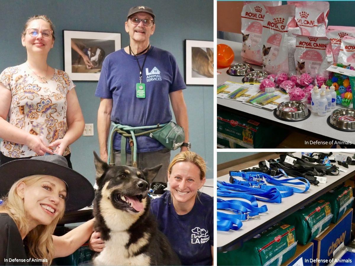 TARZANA, Calif. (Oct. 3, 2024) — In a heartfelt show of community support for abandoned cats and dogs, In Defense of Animals' President Dr. Marilyn Kroplick presented $2,000 worth of essential supplies to the West Valley Animal Shelter yesterday. The donation, made possible through the Tarzana Neighborhood Council, arrived just in time to help the shelter manage the urgent needs of homeless animals, many of whom have been waiting for months to find their forever homes.