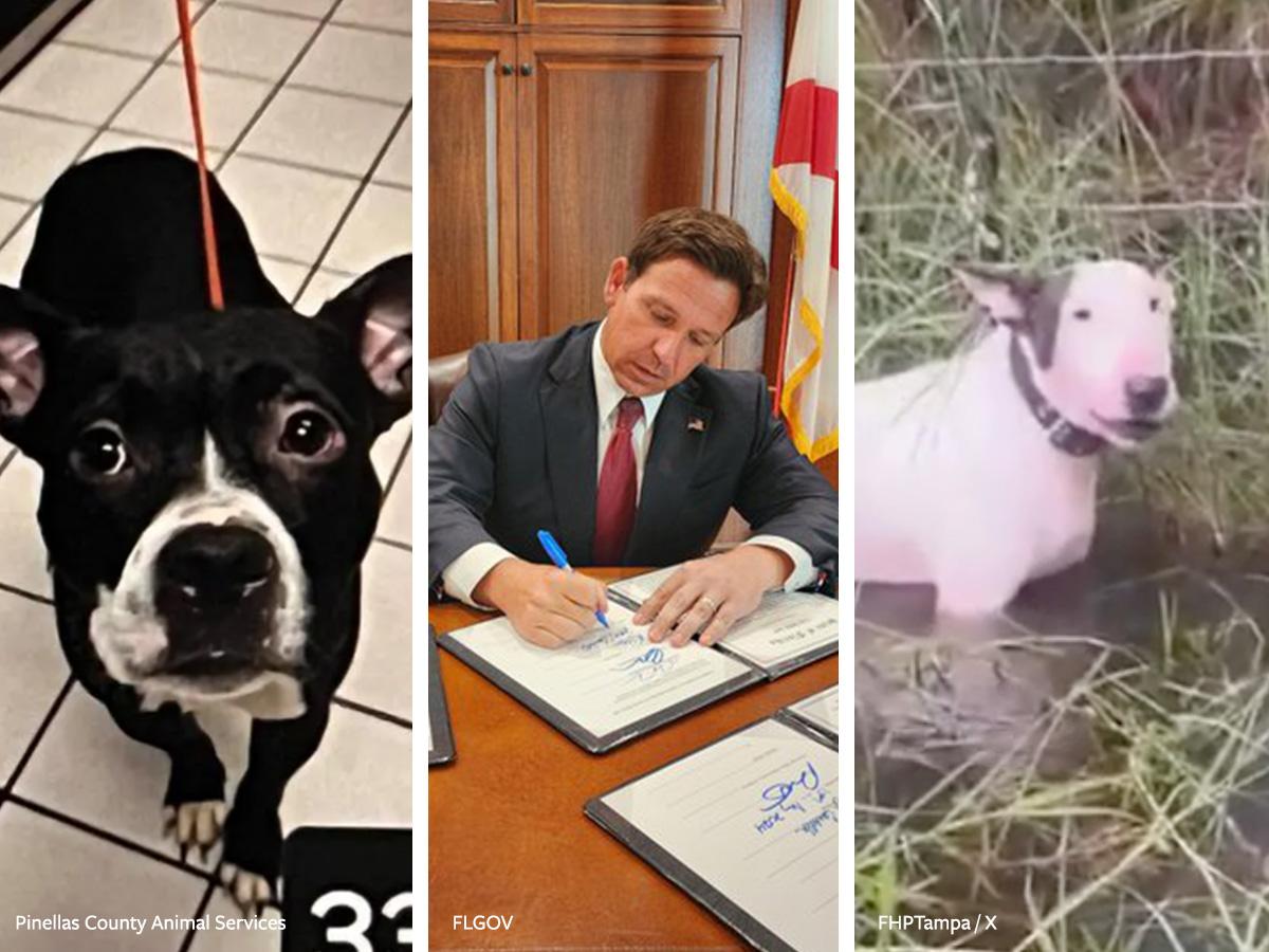 Gov. DeSantis signed Dexter’s Law alongside another bill known as Trooper’s Law. That law, which takes effect Oct. 1, 2025, makes it a third-degree felony to restrain and abandon a dog outdoors during a declared natural disaster or evacuation. It is named after a bull terrier who was rescued from rising floodwaters during Hurricane Milton by the Florida Highway Patrol.