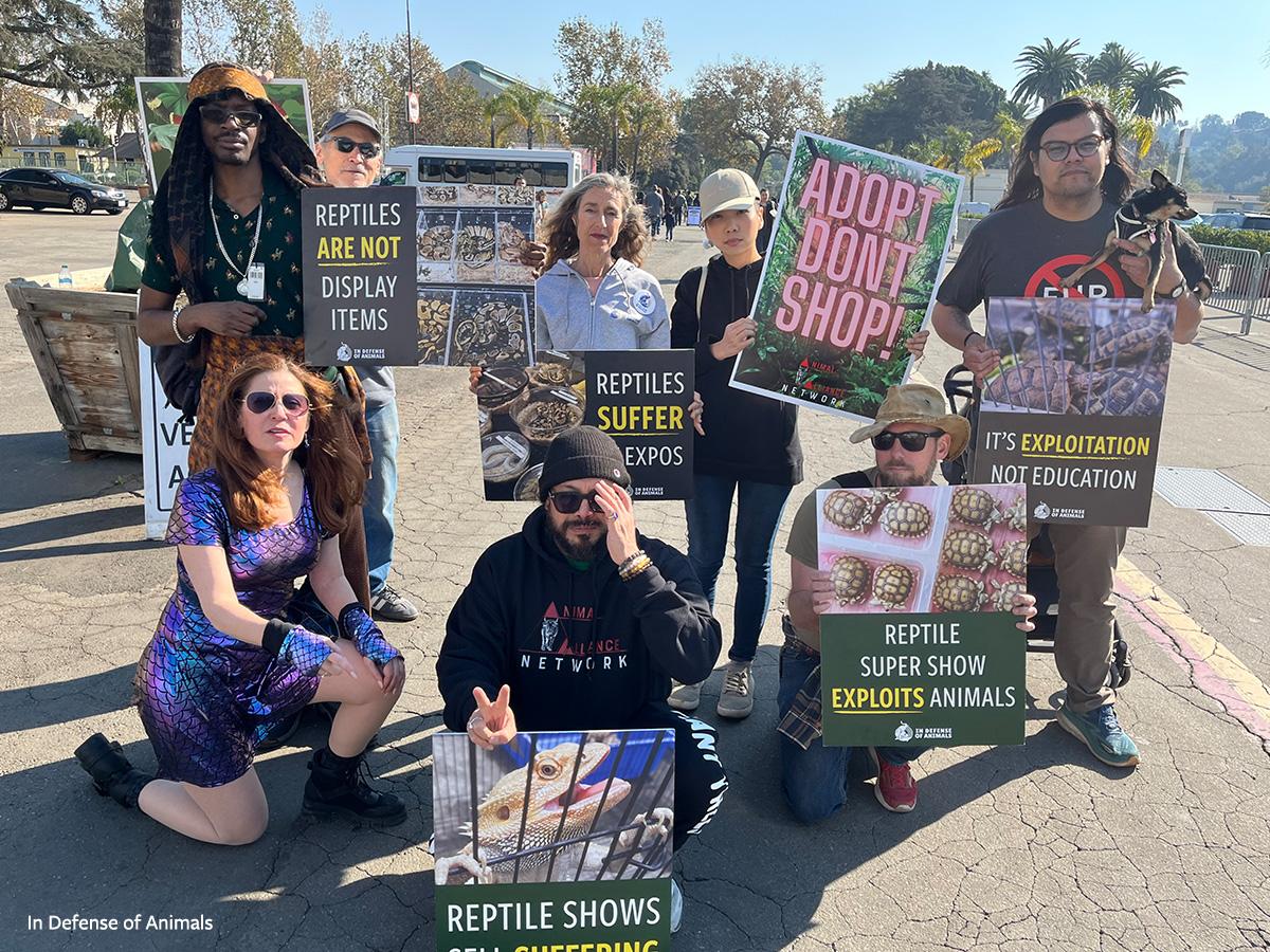 At the protest, advocates distributed 250 flyers to educate attendees about the realities of the pet trade and provide resources for adopting reptiles in need through local rescues in Southern California. We worked alongside People for the Ethical Treatment of Animals, Los Angeles Animal Save, Animal Alliance Network, Los Angeles Animal Defense League, and other local activists to spread awareness and demand an end to these cruel expos.
