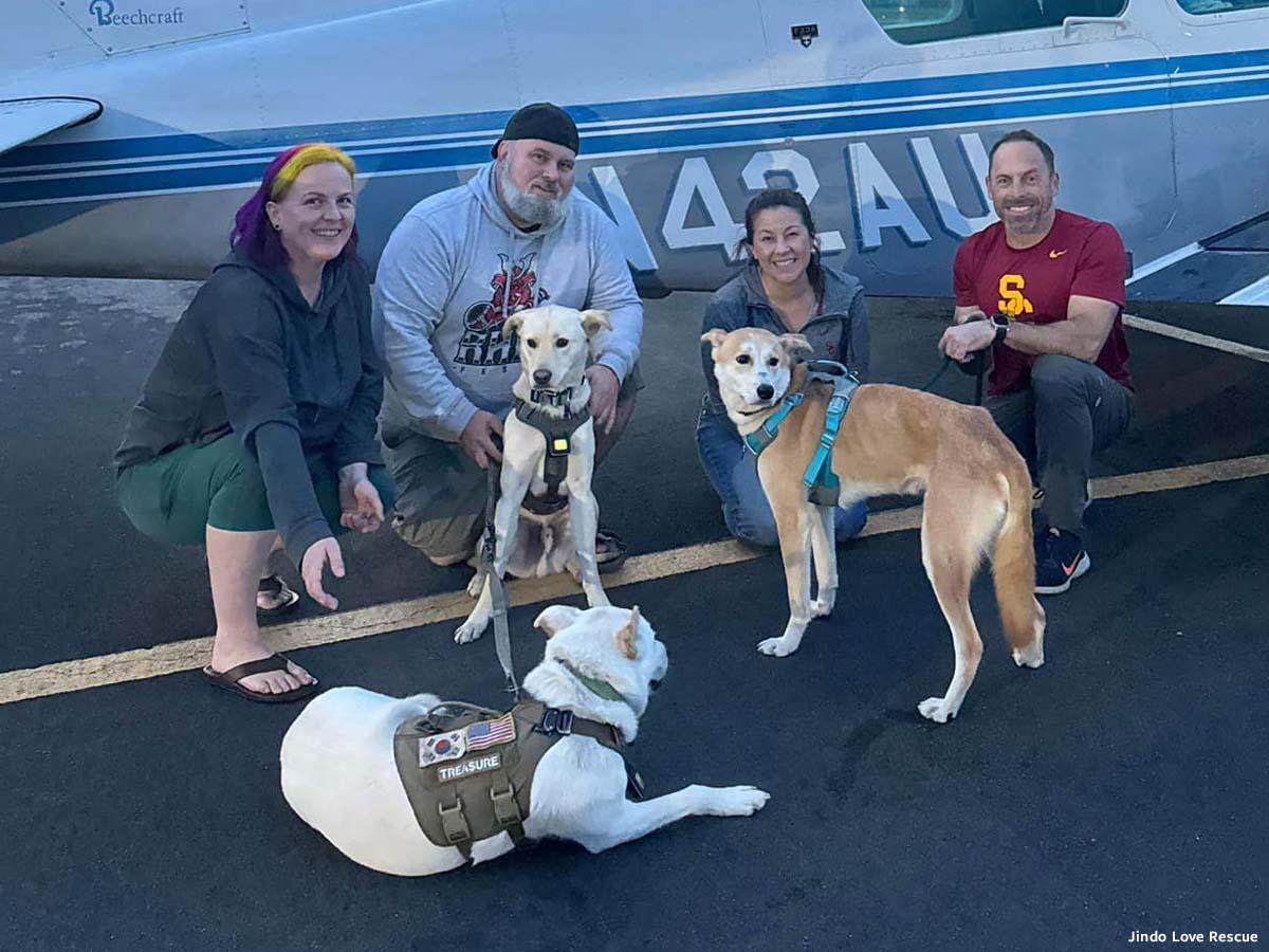 You can help support our work by making a donation, spreading the word about our ongoing need for flight volunteers to courier dogs to new homes, and by adopting — you can find many available dogs on Jindo Love Rescue’s Facebook page.