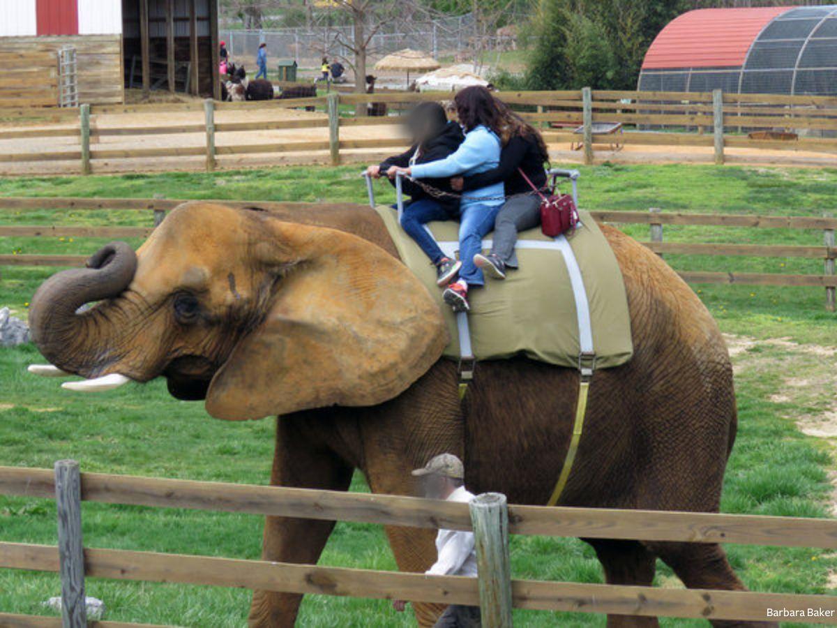 Elephant backs are not designed for riding. Their spines jut upwards, so riders are sitting on top of their spine which can sag over the years from this painful and unnatural practice. Offering rides can also pose a danger to visitors, handlers, and other elephants. In 1996, Asha attacked her handler and attacked and killed another elephant, Tia, three years after Tia arrived at the zoo. Due to the extreme deprivations and frustrations of confinement, elephants can become aggressive, snap, and become violent. Public endangerment is why the majority of zoos no longer offer elephant rides.