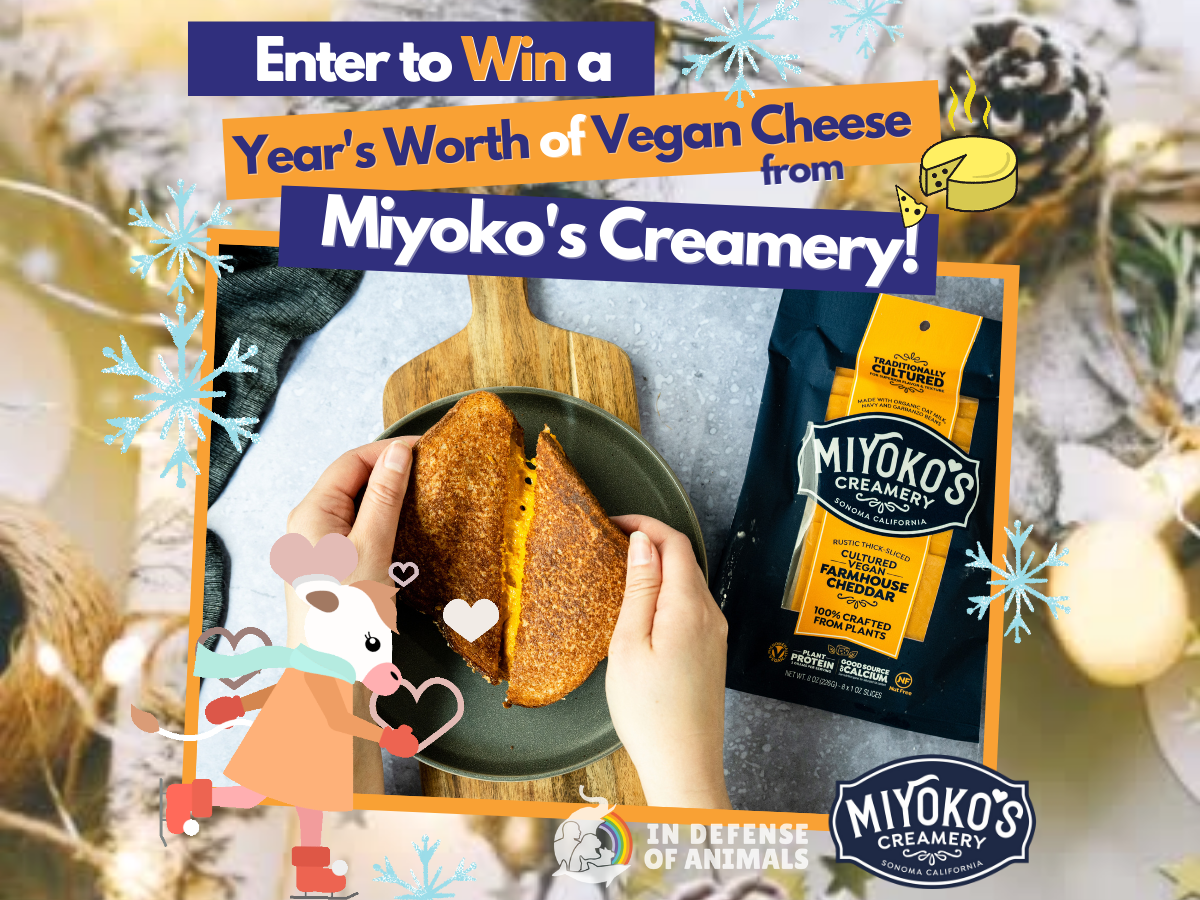 San Francisco, Calif. (December 3, 2020) — In Defense of Animals has teamed up with Miyoko’s Creamery to give away $500 worth of vegan cheese to show appreciation for compassionate animal advocates and plant-based cheese enthusiasts alike this holiday season.