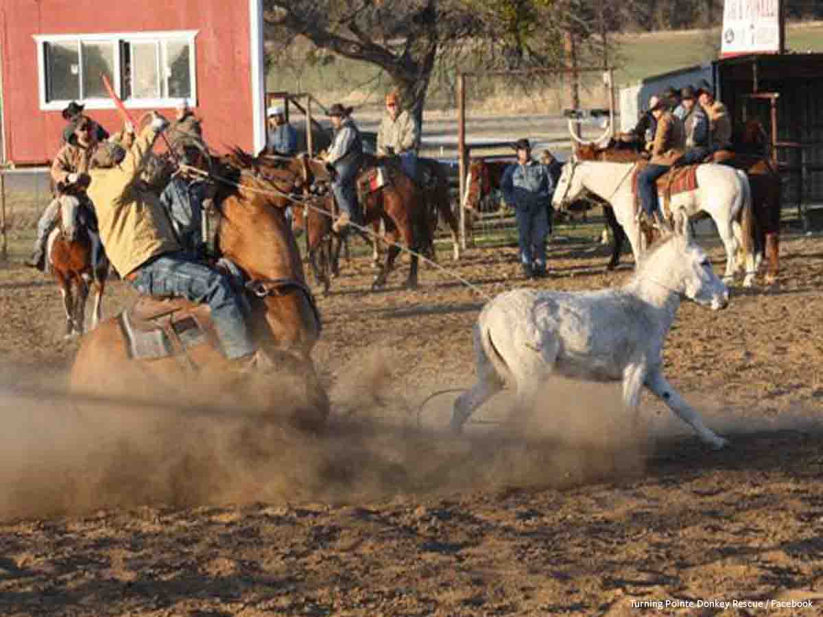 Rodeos are not known for displaying compassion toward the animals forced to perform in them, and donkey roping is no exception. This cruel so-called sport is not as well known as steer or calf roping. This may be because it's not sanctioned by the Professional Rodeo Cowboys Association, so there may be less promotion for it. But it is reportedly becoming more popular in Texas and even spreading to other states.