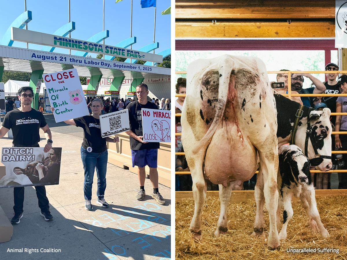 From mid-August through Labor Day, In Defense of Animals, Animal Rights Coalition, and undercover investigator Unparalleled Suffering called for the Minnesota State Fair to shut down the Miracle of Birth Center, exposing the suffering and desecration of motherhood that is routine in animal farming.