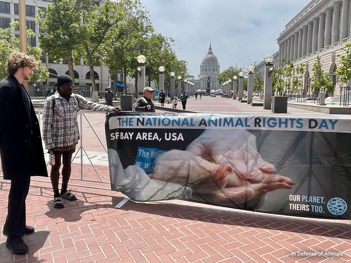 Activists with In Defense of Animals joined forces with several other organizations on June 1, 2025, to mark National Animal Rights Day with a powerful show of solidarity. Held on the first weekend in June in over 150 cities worldwide, the day honors animals exploited and killed each year while educating the public about humanity’s abuse of animals, animal-free alternatives, and progress toward ending it. It also unites the animal rights community, offers space for mourning, and inspires activism.