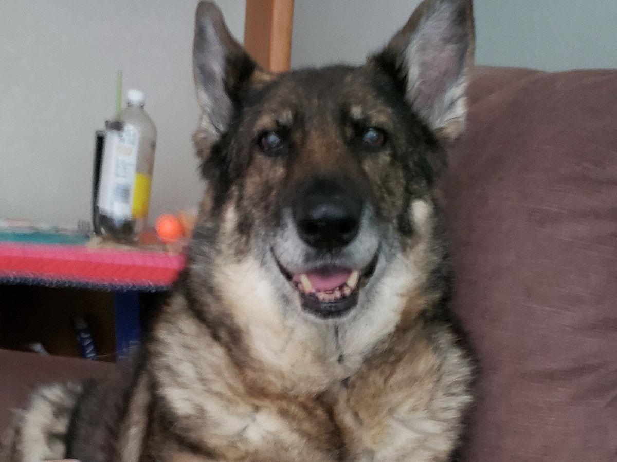 She recovered again and shortly after she was adopted by Linda Terroux, whose own two German shepherds were a perfect match, and she was renamed Hexe. She, unfortunately, broke out with mange again, but soon recovered and settled into her new and happy life.