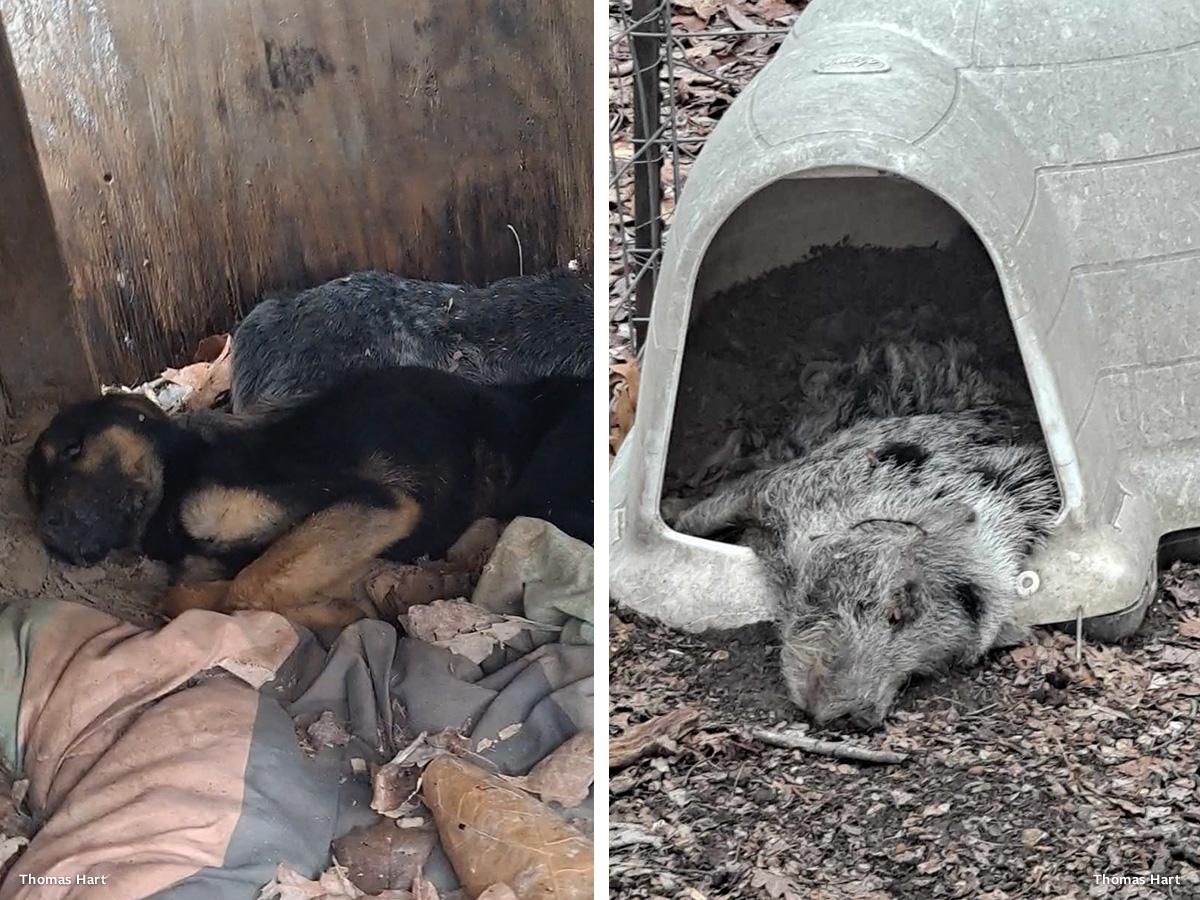 It was also noted that there was no food out for the animals and the water in the water dishes was all frozen. The dead animals were all noted to be considerably underweight.