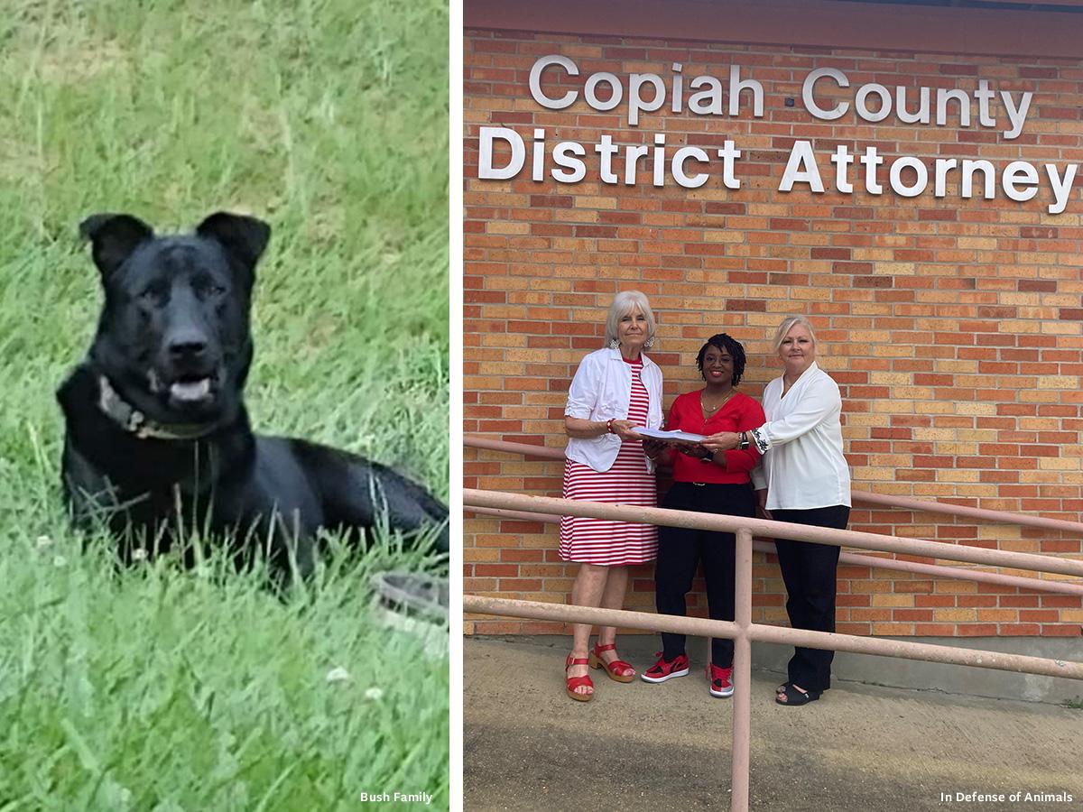 In May, our Justice for Animals Senior Campaigner Doll Stanley and Crystal Springs Mayor Sally Garland met with District Attorney Daniella Shorter and her staff. She oversees the 22nd district in Mississippi which includes Claiborne, Copiah, and Jefferson counties. We met to present our letter with more than 17,000 In Defense of Animals supporters’ signatures seeking a no-deal prosecution for Daniel Berthelette, who killed his neighbor’s dog, George, by dragging him to death behind his truck. Amazingly, Shorter received the file the day before our meeting.