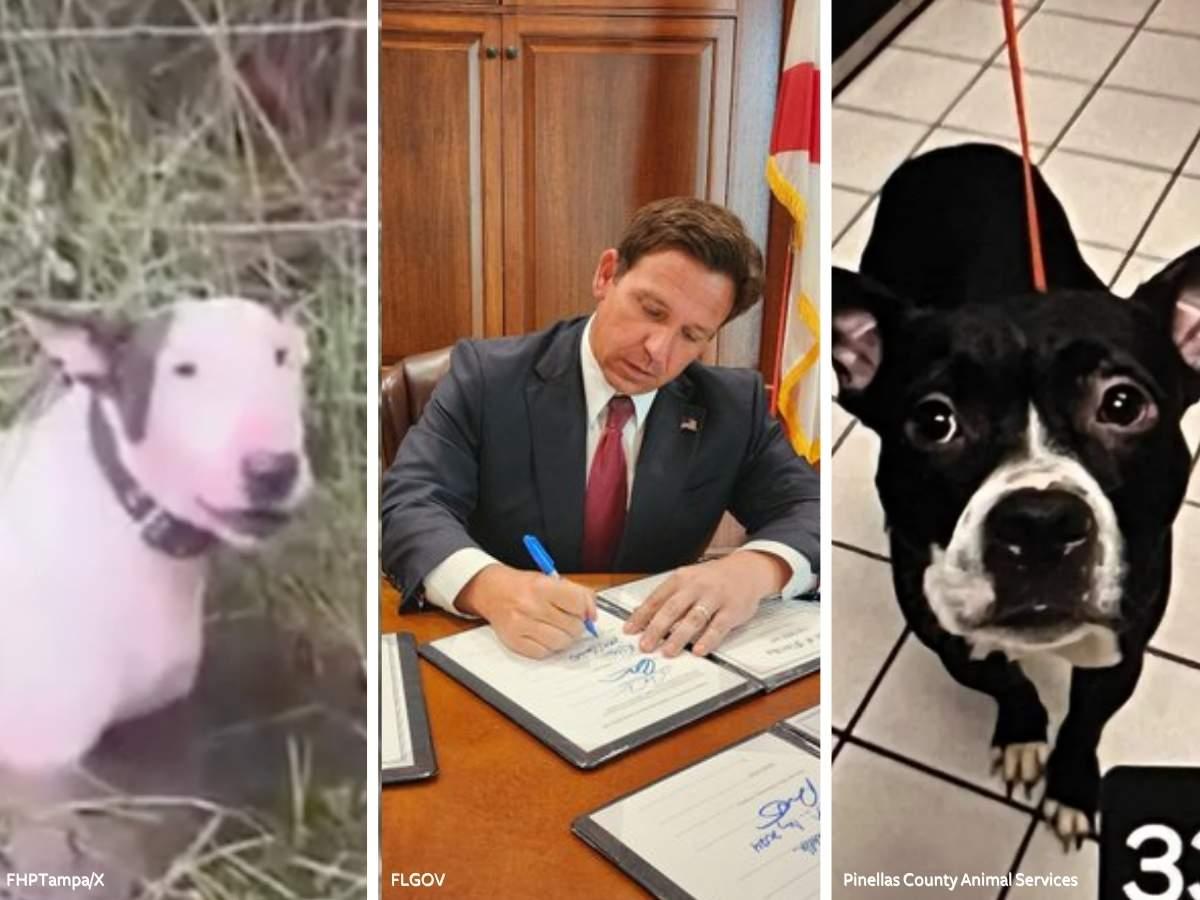 Gov. DeSantis signed Dexter’s Law alongside another bill known as Trooper’s Law. That law, which takes effect Oct. 1, 2025, makes it a third-degree felony to restrain and abandon a dog outdoors during a declared natural disaster or evacuation. It is named after a bull terrier who was rescued from rising floodwaters during Hurricane Milton by Florida Highway Patrol.