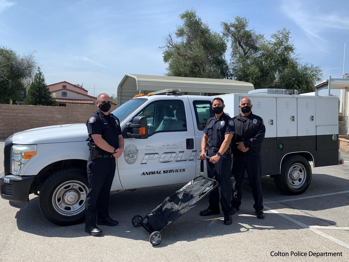 Lt. Mendez sent photos of officers with the newly-built stretcher to In Defense of Animals and said, “We really appreciate you donating this much needed equipment to our animal services team here at the Colton Police Department… this is going to help us out a lot.”