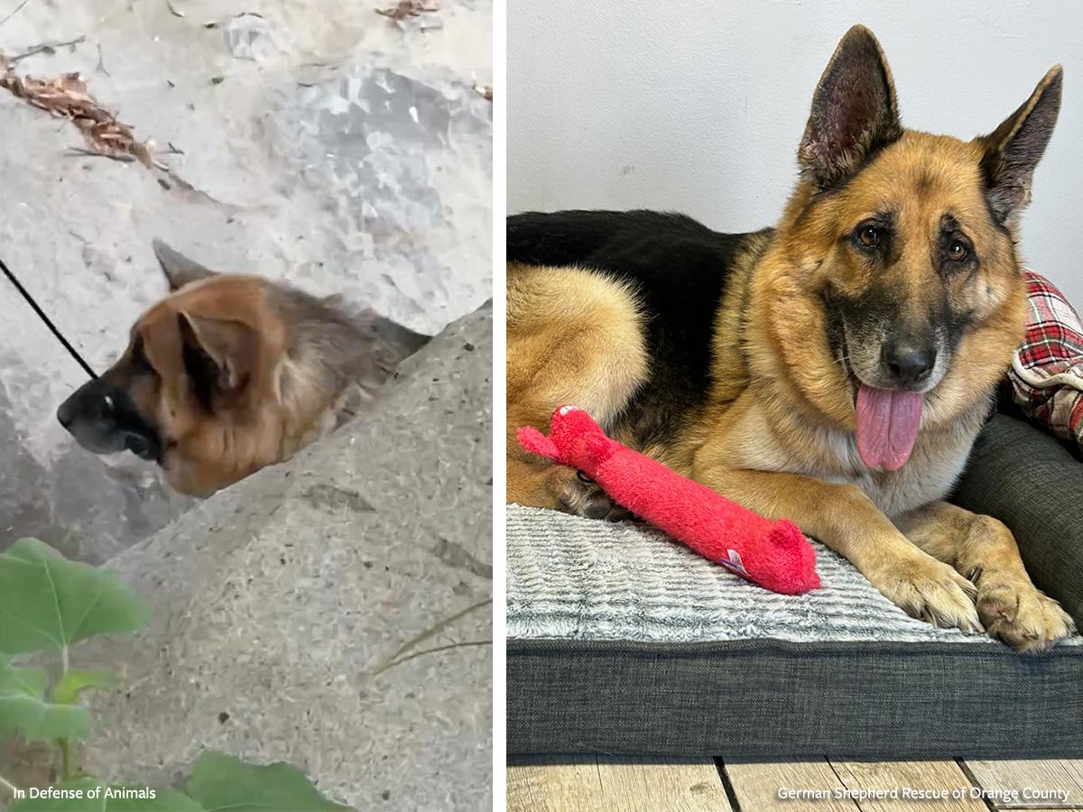 MALIBU, Calif. (July 17, 2024) — A reward initially offered by In Defense of Animals for information on the person(s) responsible for abandoning a German shepherd in Malibu Creek Canyon with zip ties around his mouth and neck has been raised tenfold in one week to $25,000, thanks to public support.
