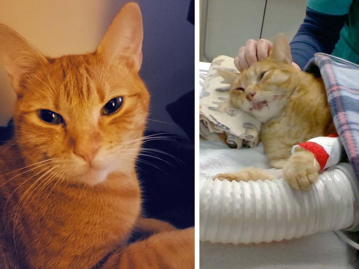 On February 25, 2021, Koji’s guardian came home to the stench of feces. As he called Koji, his cat, he saw tufts of fur, bloody feces, knickknacks knocked over, and a trail of urine and blood that led to Koji, who was bleeding from every orifice and gasping for air, while one of his legs dangled in ruin.