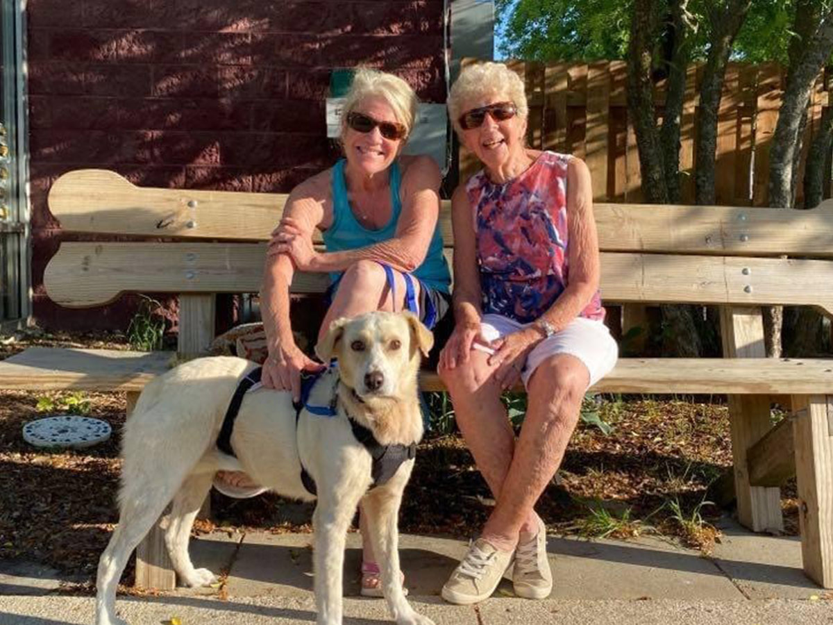 Not too long after she was rescued, Peaches’ forever guardian (Peggy) came into the shelter in search of a companion. Peggy is an active senior who swims, plays tennis, and walks daily, and wanted someone to do all of those things with her. But the right dog just had not crossed her path yet. On her fifth trip to Animal House, Peaches and Peggy locked eyes. Something in those eyes told Peggy that Peaches was the one. For Peggy, it was love at first sight.
