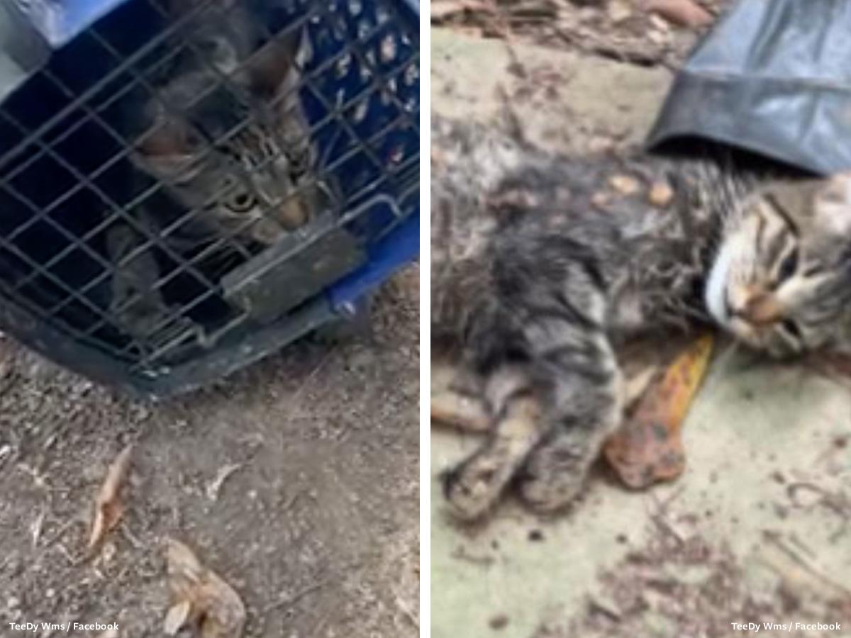 A live video posted to TeeDy Williams’ Facebook page displays her pleasure while tormenting a crated cat, who she admitted in court to keeping in the crate for two days. After making the heartless comments about the cat to her dogs, Williams continued to kick the cat’s crate around on her porch. After inciting and teasing her dogs, she released the cat who ran for shelter under a bench but was mauled by her dogs. At the request of a viewer, she posted a picture of the mangled cat.