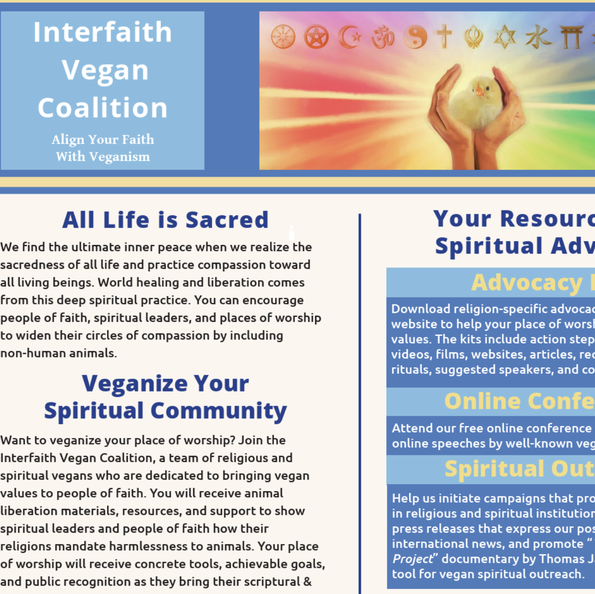 Our religion-specific advocacy kits show how most traditions mandate harmlessness to animals. Please download and share the kits below, which contain ideas for rituals and community gatherings, quotes, stories, videos, books, articles, songs, and more. Try the activities suggested in these kits to align the scriptural and heart-centered values of love and compassion with worship practices, holiday rituals, prayers, and community activities.