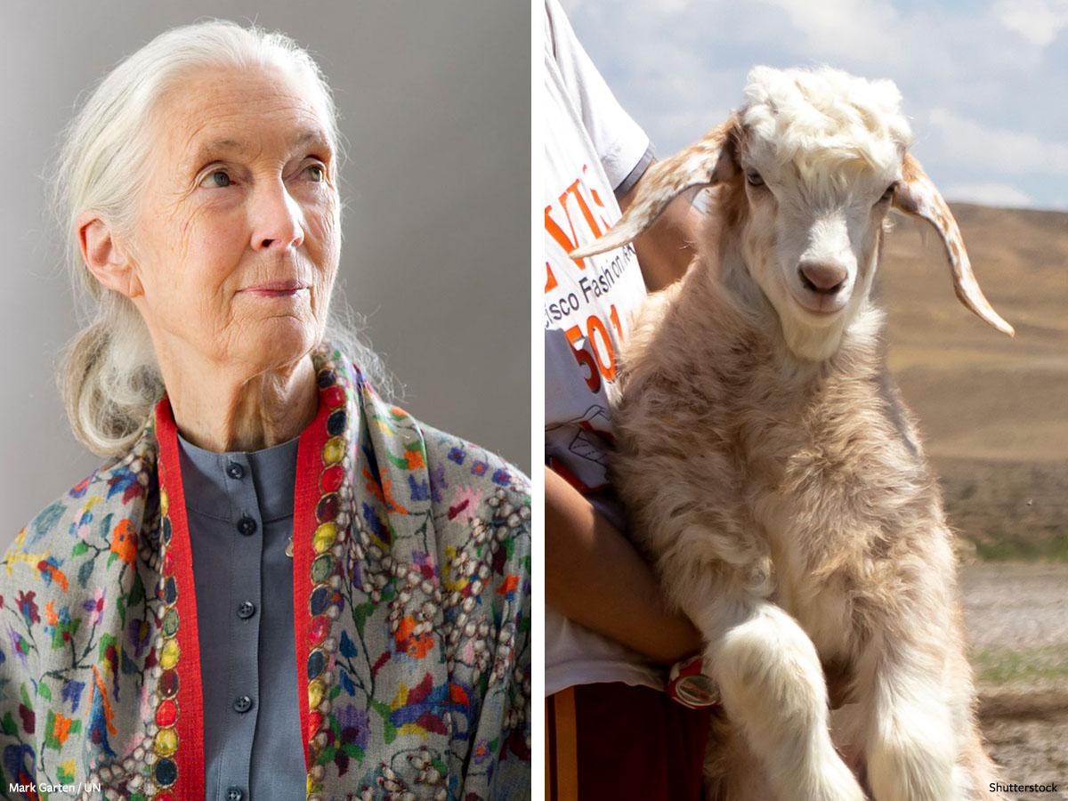 LOS ANGELES (December 20, 2021) — Dr. Jane Goodall along with fellow scientists, religious leaders, and celebrities are urging world aid charities to end animal gifting. Animal gifting programs hurt gift recipients by burdening them with more mouths to feed in areas where food and water are often scarce. They also worsen the climate crisis, decrease food stability, undermine sustainable development, contribute to animal suffering, and cause health impacts by promoting unhealthy western diets.