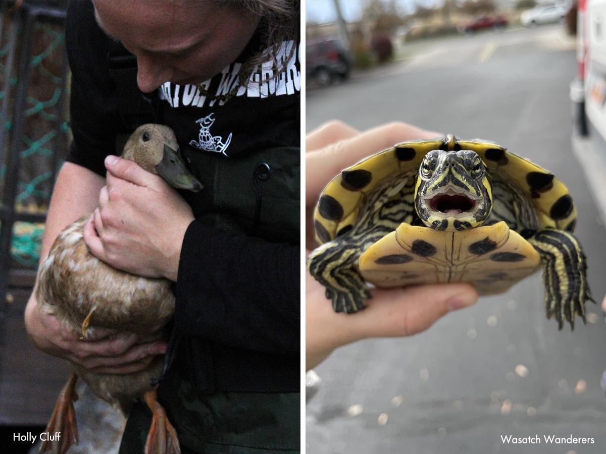 Thanks to rescue efforts, most of the ducks have been adopted. The turtles went to an educational center where they will receive proper care. The remaining ducks and goldfish are safe at Wasatch Wanderers’ sanctuary until they find good homes. To inquire about adopting ducks or goldfish, please contact Wasatch Wanderers at wasatchdwaterfowl@gmail.com.