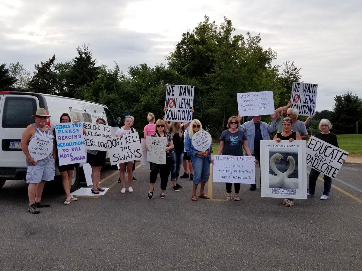 The Genoa Township Board of Trustees received opposition letters from nearly 9,000 In Defense of Animals supporters, which urged the township to rescind its swan killing resolution intended to free waterways for those using jet skis and other aquatic vehicles without interference from nesting mute swans.