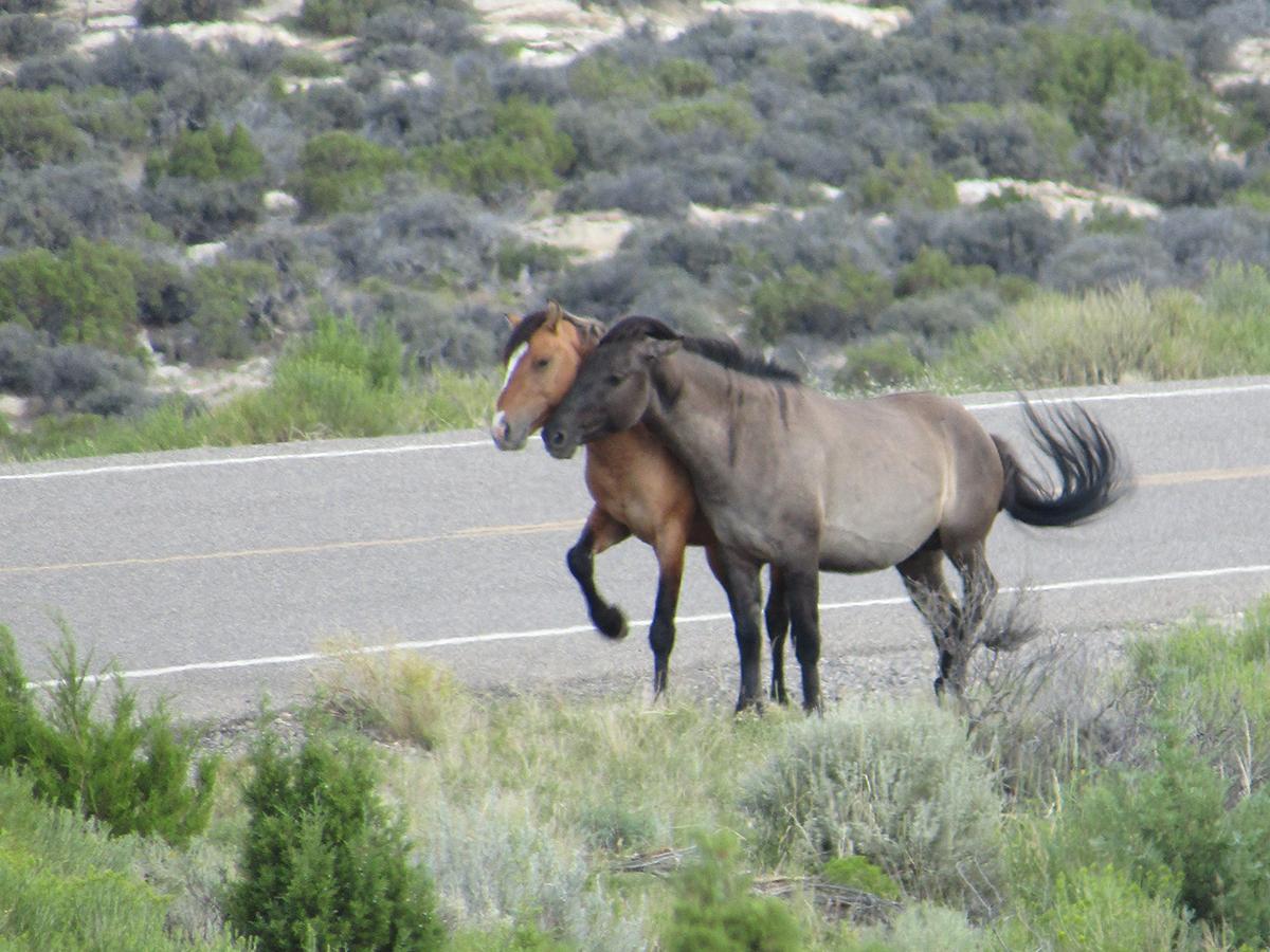 Wild horses travel many miles every day going to and from their water sources and seasonally to their historic winter and summer ranges. Their migration travel patterns are well established in their instinctive memory. When roads cut through wild horse and burro territory, vehicle collisions with horses are all but guaranteed to happen.