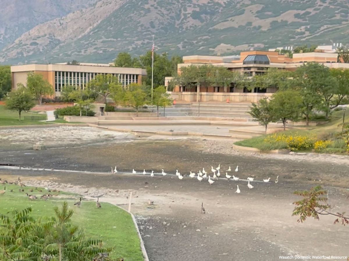 Over the years, people have abandoned domestic ducks and geese at the pond on the Weber State University (WSU) campus and these birds have bred to create the current population. WSU does not officially care for the birds and reports that several of the animals have been hit by cars and attacked by an off-leash dog.