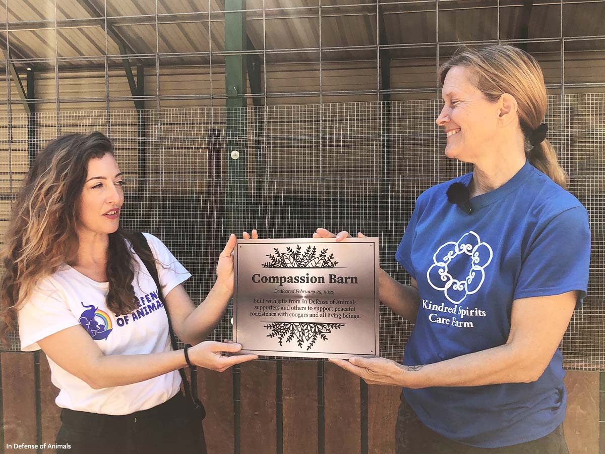 Thanks to our generous supporters, animal sanctuary residents of Kindred Spirits Care Farm in Chatsworth Hills, California, now have safe lodging to prevent conflicts with native wild predators. We helped to fund and install the Compassion Barn, which serves as a model for how to foster coexistence between domestic animals and mountain lions.