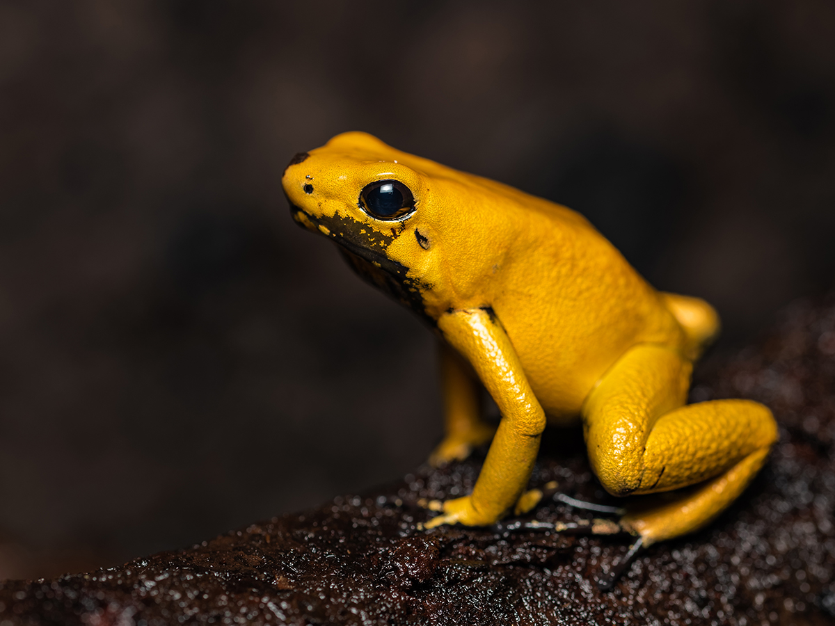 The golden poison dart frog has developed exceptional defenses against predators and is one of the deadliest animals on the planet. The toxins produced by a singular, 2-inch frog could kill ten grown men!