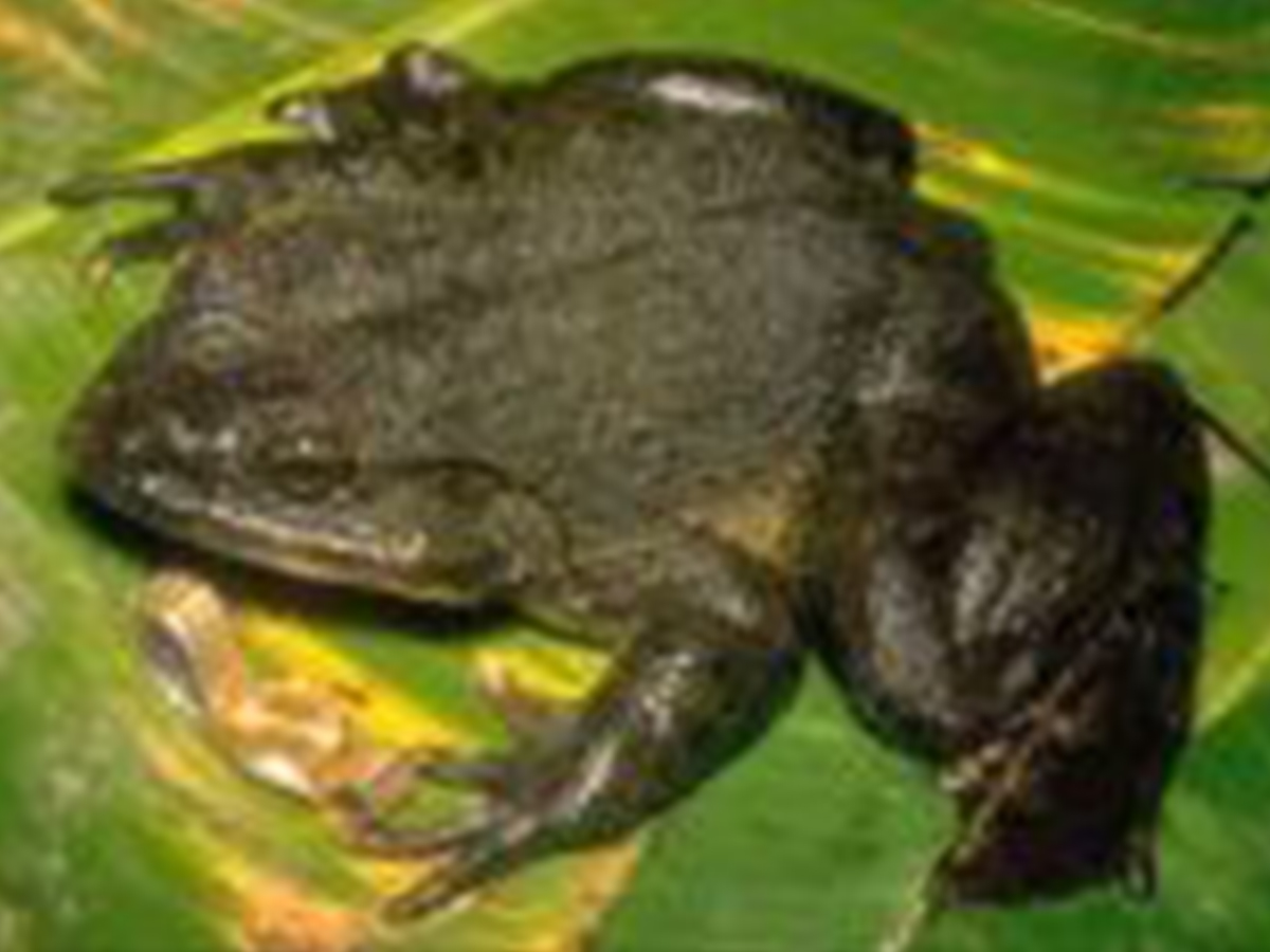 The largest species of living frog today is the goliath frog (Conraua goliath) of West Africa, whose members can grow to 12.5 inches in length and weigh in at a staggering 7.2 pounds — the weight of a newborn baby!