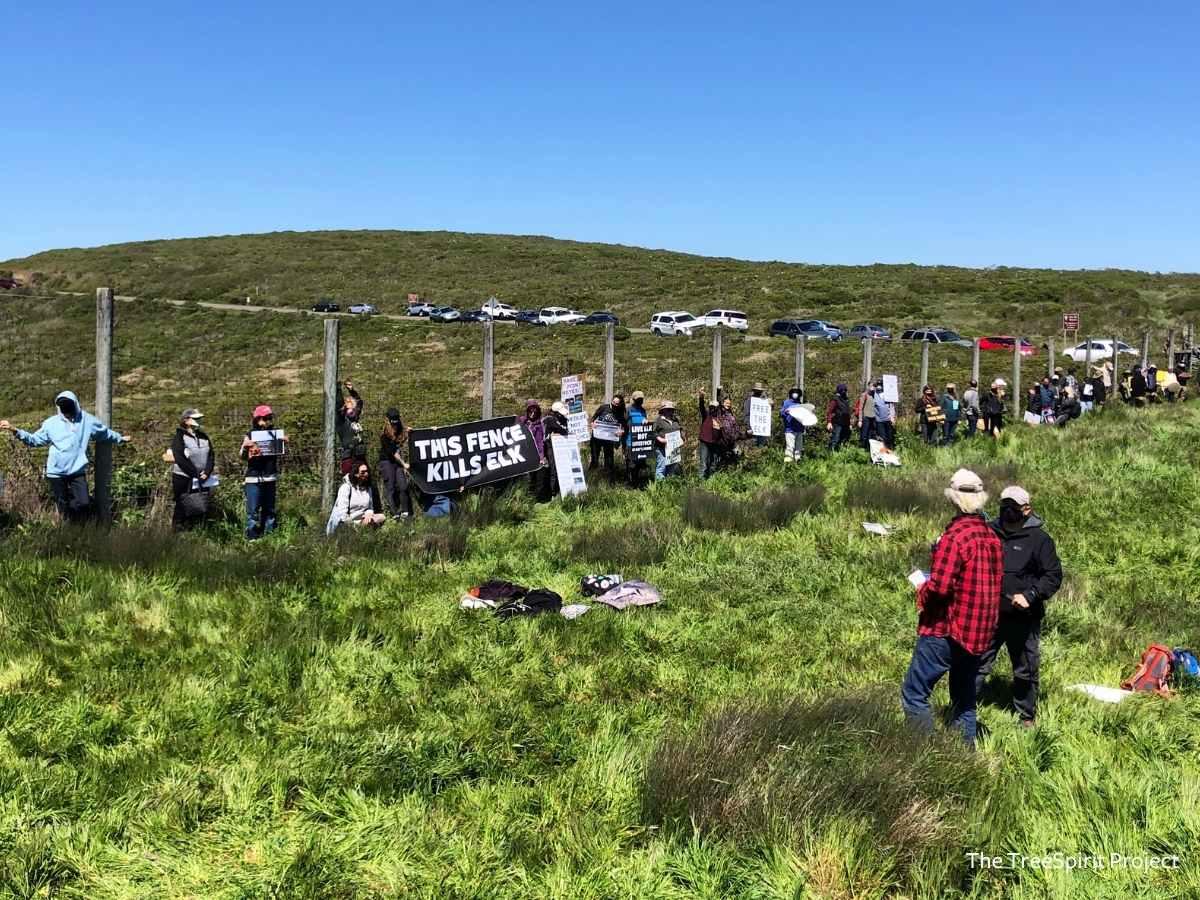 Point Reyes, Calif. (April 12, 2021) — The deadly mismanagement of Point Reyes National Seashore sparked a rally of over 120 people on Saturday hosted by In Defense of Animals, The TreeSpirit Project, and ForELK with a land blessing by representatives of the Coast Miwok. The National Park Service recently announced that 152 Tule elk died in 2020, all from one herd trapped in a fenced Tule Elk “Preserve” at Tomales Point. Two other Tule elk herds that roam freely in the park did not suffer mass deaths because they are not prevented from accessing food and water, but the NPS plans to start shooting them while expanding ranching at the Seashore.
