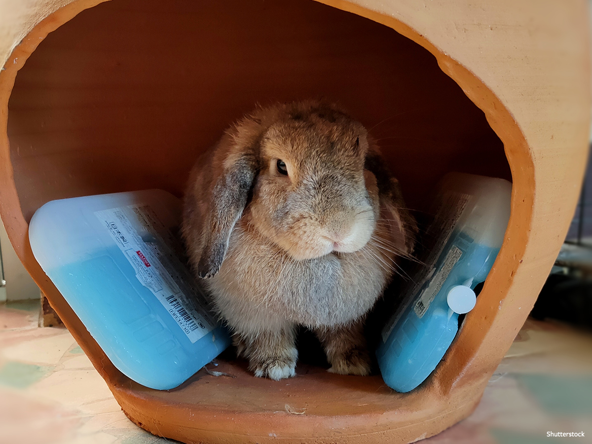 Rabbits are especially sensitive to heat and can be susceptible to heat stroke. Ideally, companion rabbits should be kept indoors. You can provide your animals with frozen water bottles to lay against if they choose or put tiles in the refrigerator.
