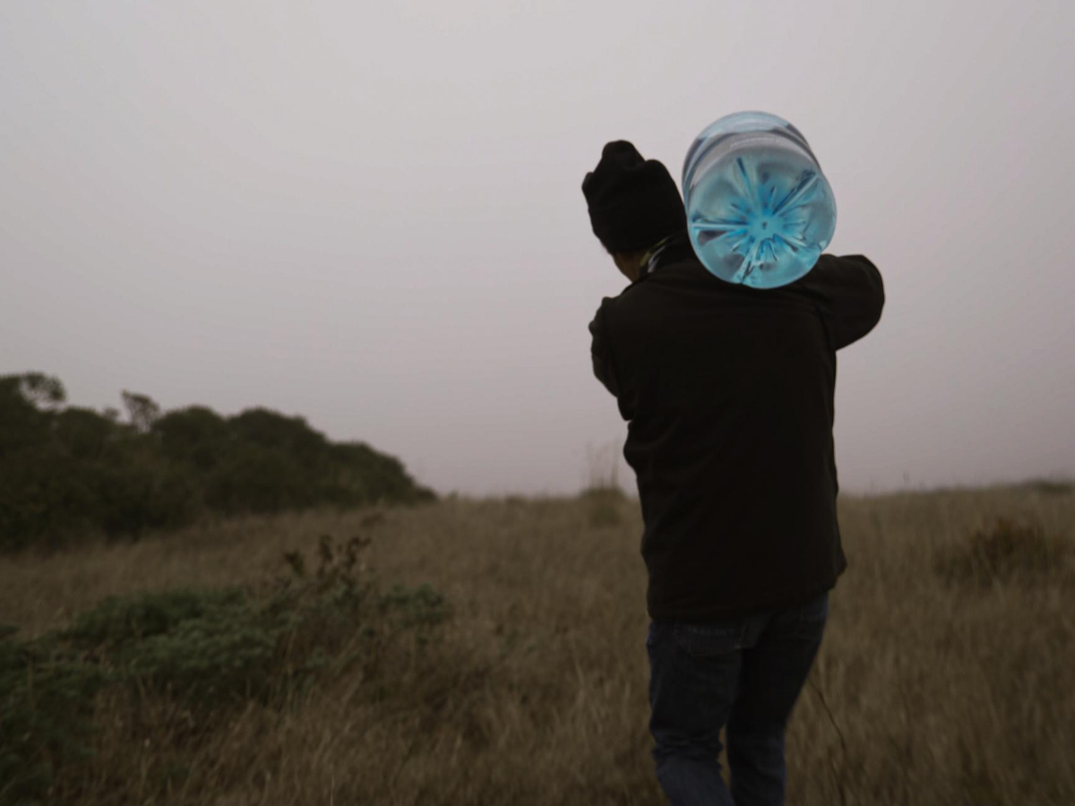 Wrapped up warmly against the thick night fog, activists hauled 40 lb. bottles by hand over rough terrain to the troughs where the elk can now access them. Some activists carried one or two heavy bottles at a time, while others worked to quickly refill bottles as they returned.