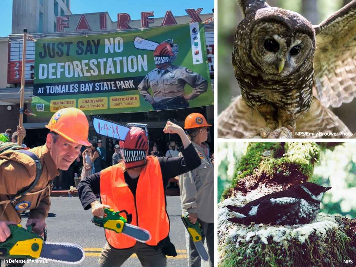 FAIRFAX, Calif. (June 10, 2025) — Thousands of Marin County residents were stunned to see a costumed California State Parks “forester” with a chainsaw for a head march through the Fairfax Festival parade on June 7. Even more shocking is the reason behind the performance: a massive, taxpayer-funded deforestation project planned for more than 1,000 acres of Tomales Bay State Park.