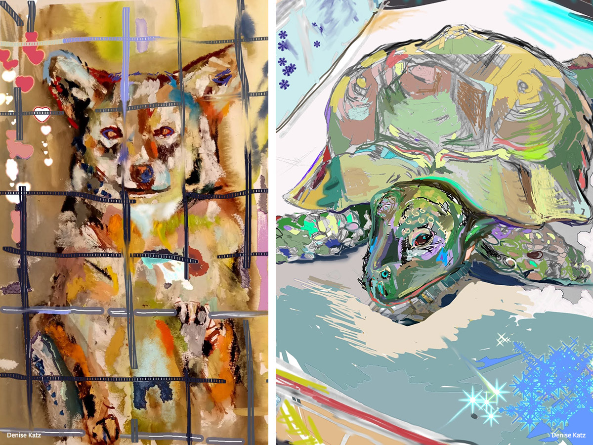 The Valentine’s card designs were created by artist Denise Katz Howick, who was moved by Rocky and Spur’s plight. Illustrations: Denise Katz Howick