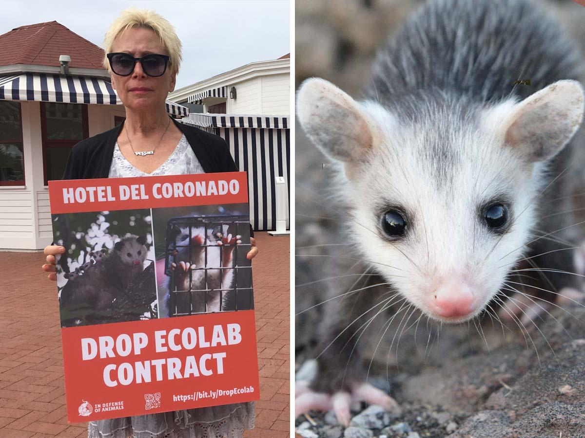 CORONADO, Calif. (May 9, 2022) — In Defense of Animals and outraged San Diego residents returned to “eco-friendly” Hotel del Coronado for a second time on Mother’s Day to protest the hotel’s cruel policy of destroying wild animal families by trapping and killing wild animals on its property.