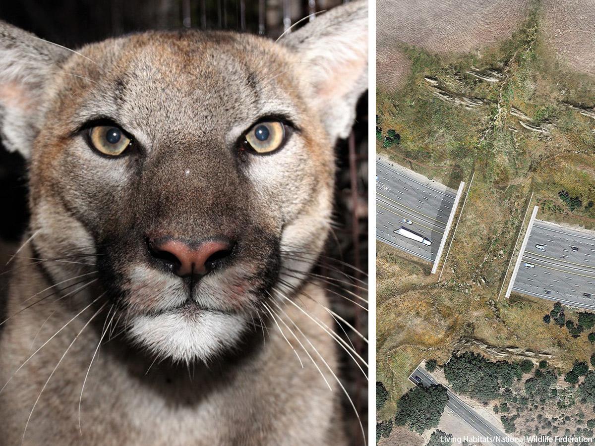We’re honoring National Wildlife Week with bittersweet news for wild animals who live in California’s Santa Monica Mountains. Plans are underway to build the world’s largest highway overpass wildlife crossing so resident animals, including mountain lions, can safely cross the 101 Freeway — a ten-lane highway where 300,000 cars drive daily. Sadly, the crossing comes too late for mountain lion P-78, an avid highway-crosser who was just pronounced dead after ingesting rodenticide poisons and being fatally struck by a car.