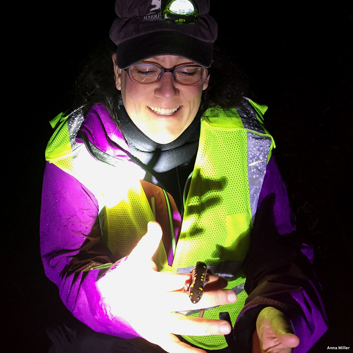 Brett Amy Thelen is Science Director for the Harris Center for Conservation Education, a regional land trust and environmental education organization based in the Monadnock Region of southwest New Hampshire. She has been coordinating community science programming — including the Harris Center's popular Salamander Crossing Brigade program — since 2007. She holds a master’s degree in Environmental Studies with a concentration in conservation biology from Antioch University New England, and a bachelor’s degree in Literary & Cultural Studies from the College of William and Mary.