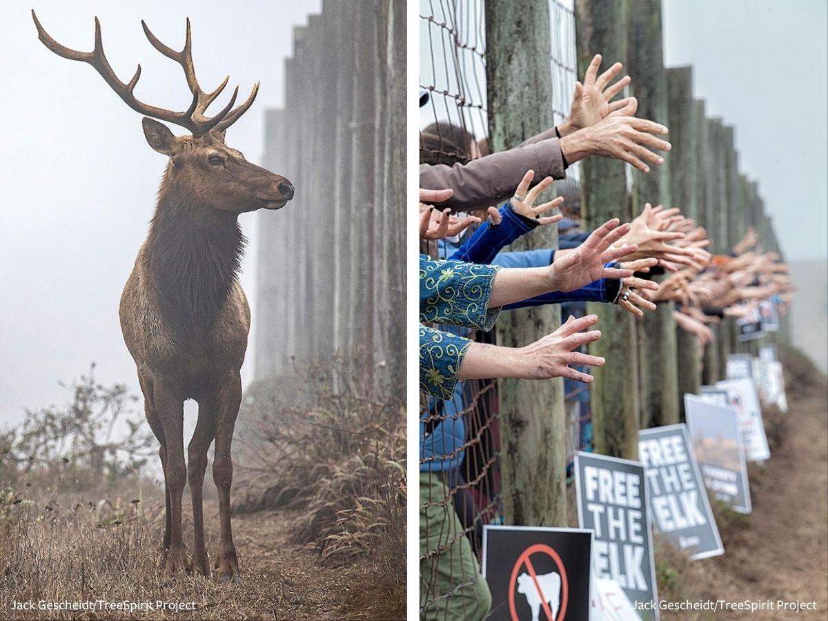 A dramatic increase in the number of demonstrations and citizens willing to take action to end the confinement and death of Point Reyes elk have put pressure on the National Park Service. Photos: Jack Gescheidt/TreeSpiritProject.com