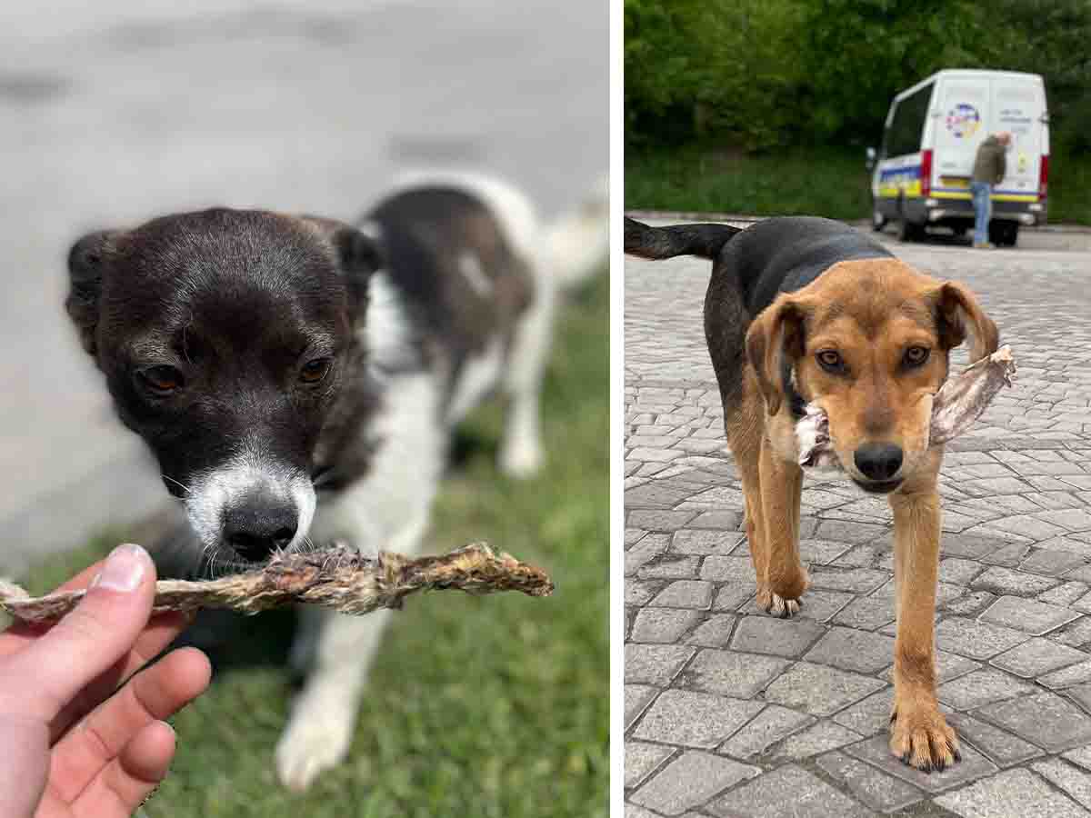 Under normal circumstances, street dogs and cats are typically treated very well in Ukraine which is evident from how friendly and trusting they are with people. It is difficult to imagine the terror they are now enduring while facing a raging war without a home or caretakers. The rescue team provided food to these animals whenever possible, and were met with happy meows and wagging tails.
