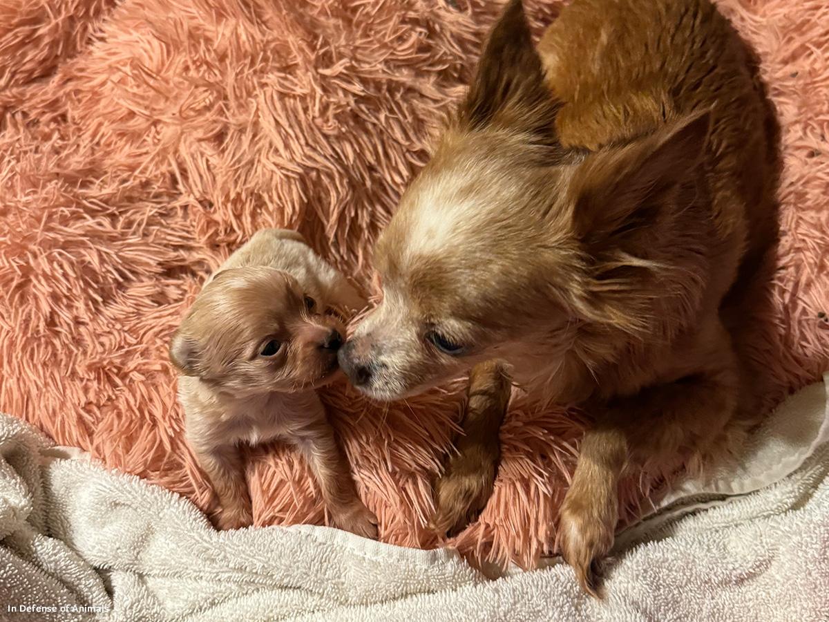 Carmella is a Chihuahua who was rescued from a backyard breeder. The young men who rescued her knew that they could not appropriately care for her, so they asked if Hope Animal Sanctuary could take her. At the time, Carmella was pregnant and she had also been run over at some point which broke her pelvis. We agreed and everything has been going well.
