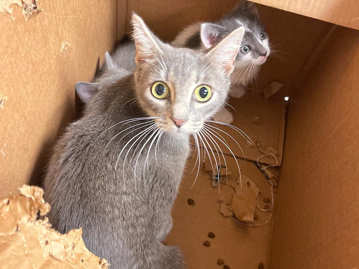 We immediately sent our animal caregivers over to assess the situation and when they opened the box they found a beautiful mother cat and her two kittens. Sadly, the box had been sealed and the mother had been trying to claw her way out.