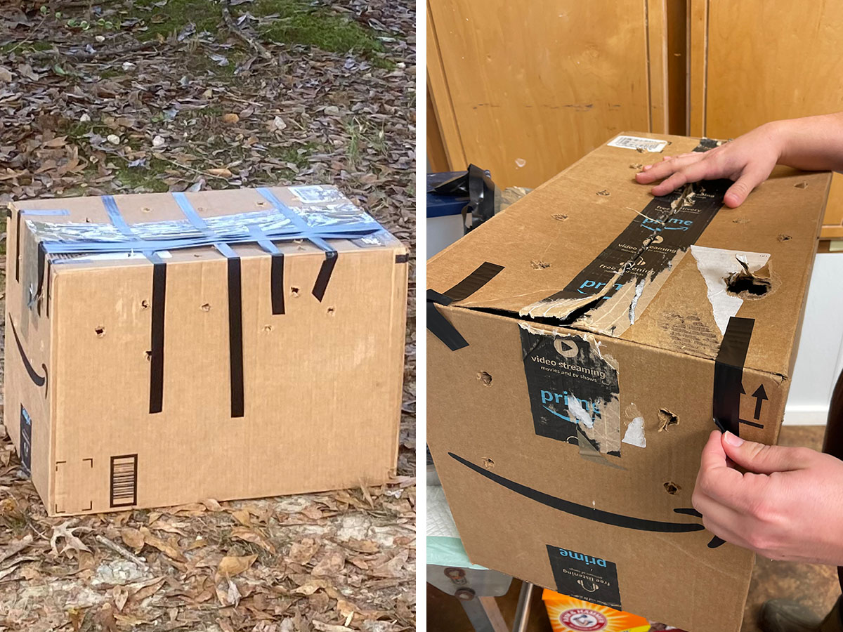 Early one recent morning, a neighbor of our Hope Animal Sanctuary in Grenada, Mississippi found a mysterious box in her driveway. When she went for a closer look, she could hear movement coming from inside and immediately called us for help.