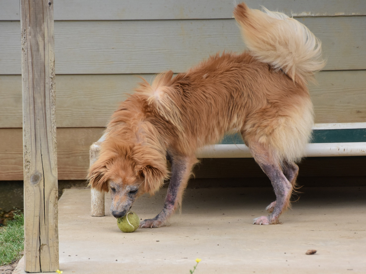Now, however, she’s getting the care she deserves, and we’re thrilled to watch her blossom and play. Lovey is still currently on daily antibiotics for the bacterial infection caused by the mites and scratching. We will also continue giving her a bath every three days with a medicated shampoo for the duration of the treatment, which we expect to take 4-5 weeks.