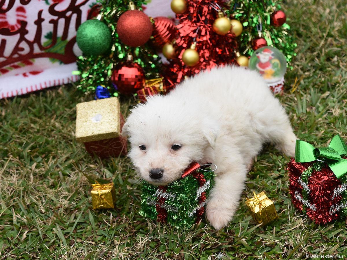The neighbor convinced the guardian to release the puppies to our Hope Animal Sanctuary. When we got them, they were terrified since they had never been touched by humans. However, they are quickly learning that interacting with humans can be good, and they are getting better every day because they are getting a lot of attention and love from our animal caregivers.