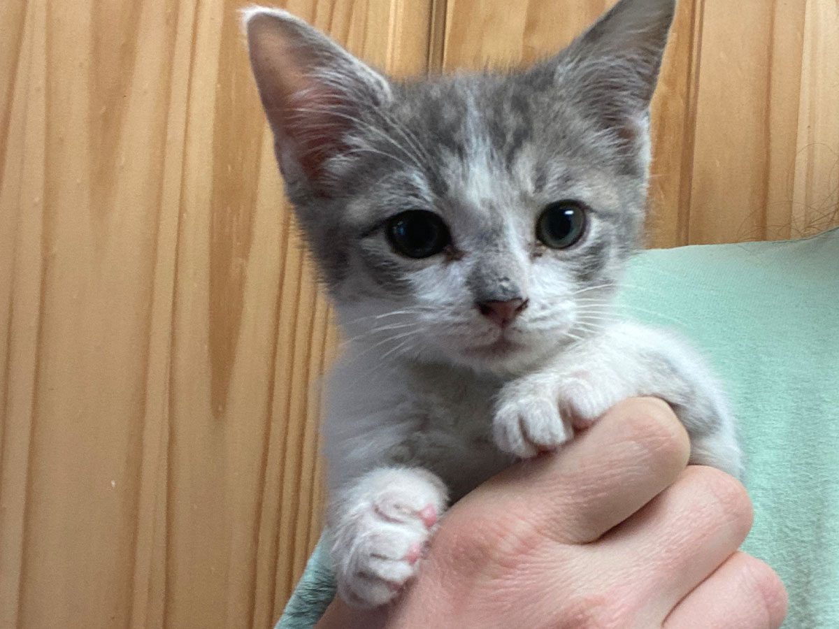 It’s always a good idea to look before you mow or do serious bush removal to ensure no wild animals will be harmed or disturbed, but in this case, a man who was about to start clearing a pasture spotted something completely unexpected: a tiny kitten. Thankfully, the man was able to rescue the little kitten and brought him to our Hope Animal Sanctuary for help.