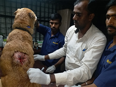 For nearly 2 weeks, the dog received daily treatment and dressing to heal the painful and infected wound by Dr. Londhe and his team.