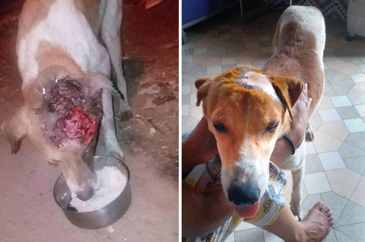 Keeping the street dogs of Mumbai, India safe and healthy requires a collaborative effort between concerned community members and veterinary care professionals. When sick or injured dogs arrive at our clinic, their conditions can range from easily treated ailments to life-threatening wounds... like this poor pup!